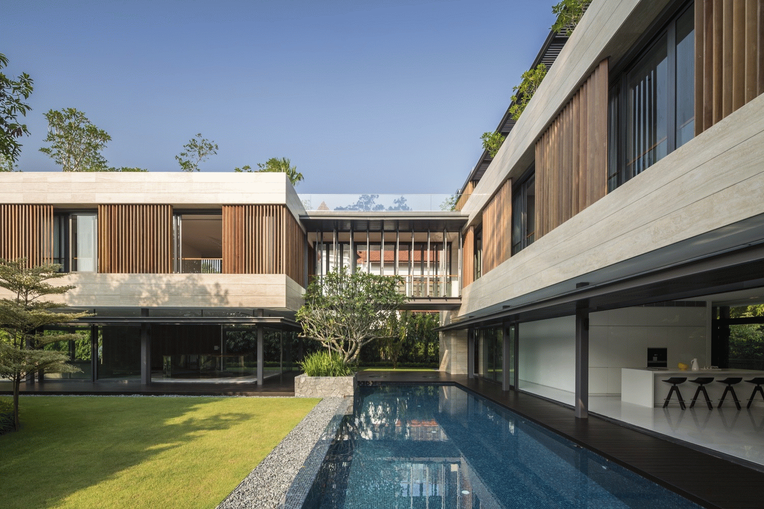 由新加坡本土著名建筑事務所Wallflower Architecture + Design的秘密花園別墅為我們展現(xiàn)了一個當代、熱帶、園林的夢幻之家,L型的建筑結構,依著泳池和園林而建,融入唯美的自然景觀。